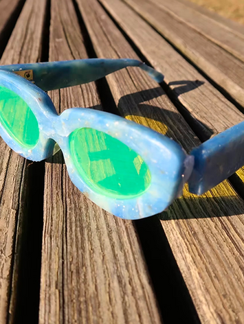 However, the true highlight of the project came when Mellow Grove artist Benny "Tripp" Smith, who had been experimenting with materials in his college workshop, envisioned something even more impactful—*Bottle Cap* sunglasses. Using the resources and tools available at his school, Benny crafted the sunglasses from melted plastic, turning ocean waste into a wearable statement of sustainability. The result was not just a pair of sunglasses, but a symbol of how creativity and environmental consciousness can come together to create something functional and stylish.